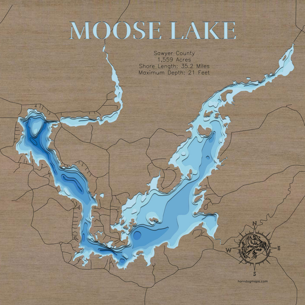 Moose Lake, WI Wood Map | 3D Nautical Wood Charts